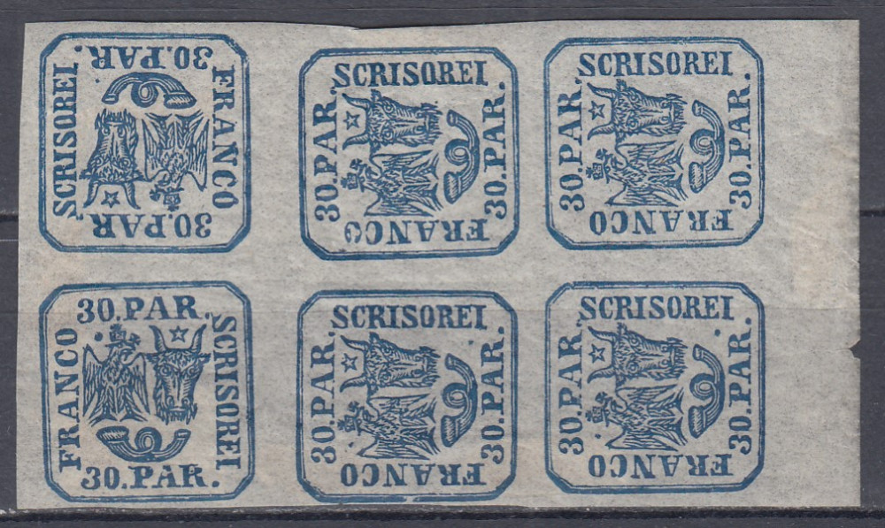Printre primele emisiuni românești care au inclus tête-bêche-uri se numără celebra emisiune „cap de zimbru” din 1858, care avea tête-bêche-uri pentru toate cele trei valori și pentru ambele tipuri de hârtie pe care au fost tipărite. De asemenea, și emisiunea din 1862 a Principatelor Unite conținea tête-bêche-uri.